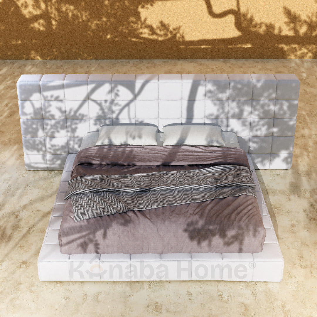 Wrapped entirely in sumptuous velvet, the Arlo is defined by its continuous grid-tufted pattern, flowing seamlessly across an oversized cushioned headboard, sturdy frame, and integrated base. Each panel, each line, evokes a sense of quiet order, a soft geometry that brings both comfort and visual rhythm to your space.