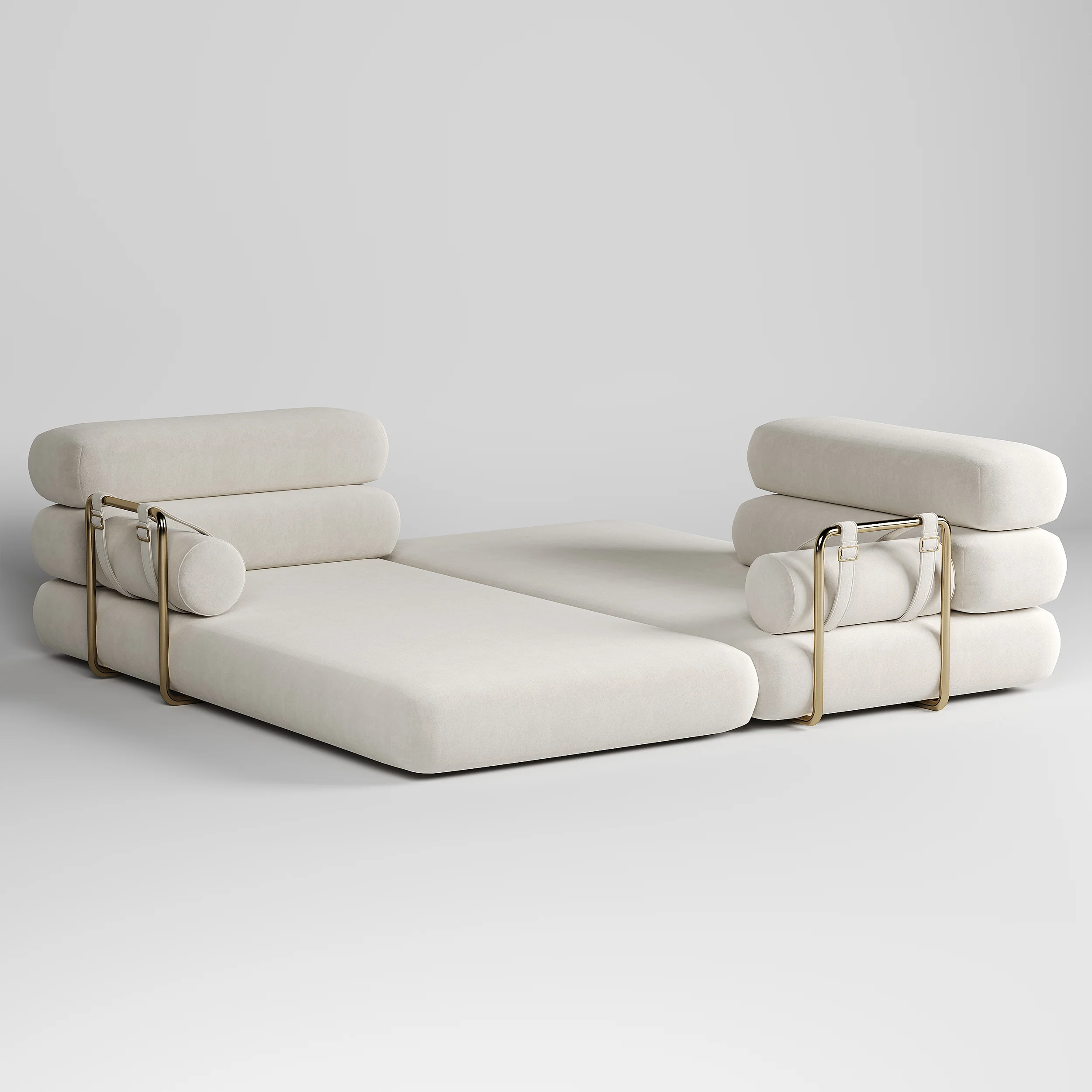 - Detachable bolster pillows with refined buckle straps for flexible comfort.
