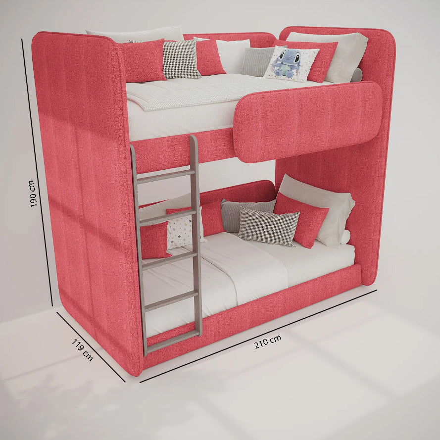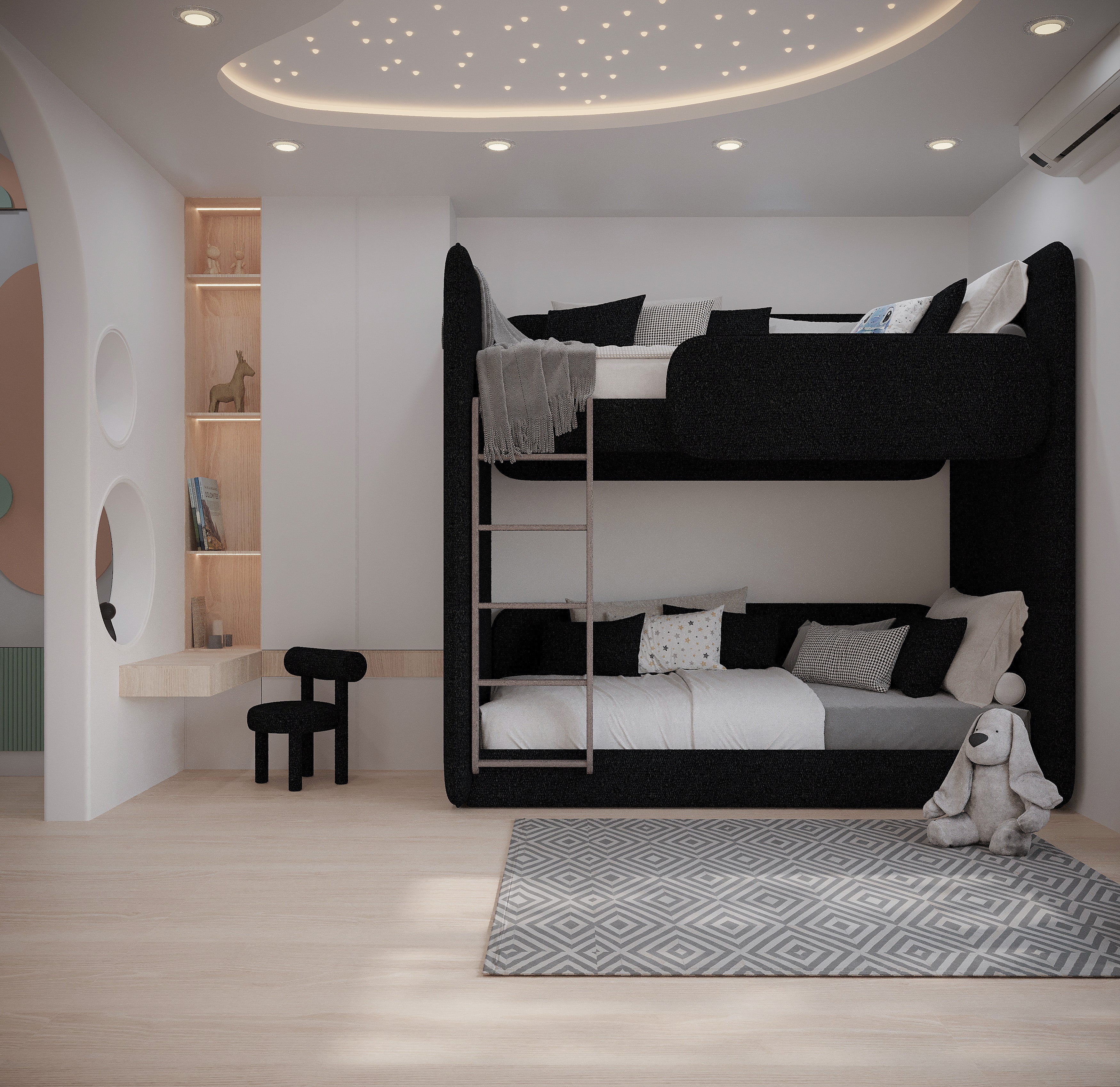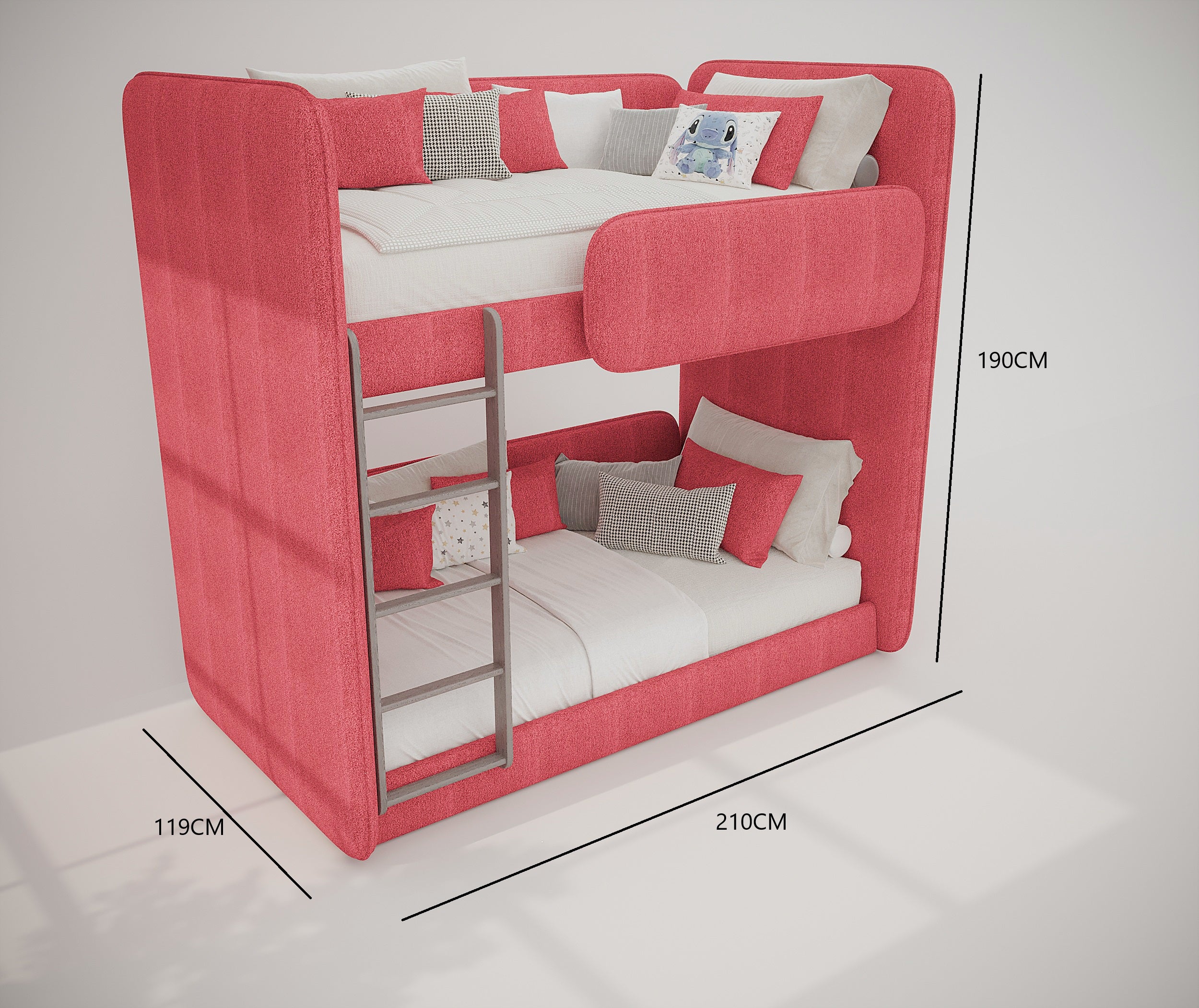 Introducing the Ciro Kids Bunk Bed, a perfect blend of style, practicality, and comfort for your child’s bedroom. Upholstered in premium velvet or boucle, this children bunk bed offers a soft yet durable finish that complements modern interiors. Featuring a two-tier design that maximizes space, it includes a protective barrier on the upper bunk for safety and a built-in staircase for easy and secure access. The Ciro Kids Bunk Bed is the ideal solution for siblings to share, creating a functional yet elegant focal point in any room.
