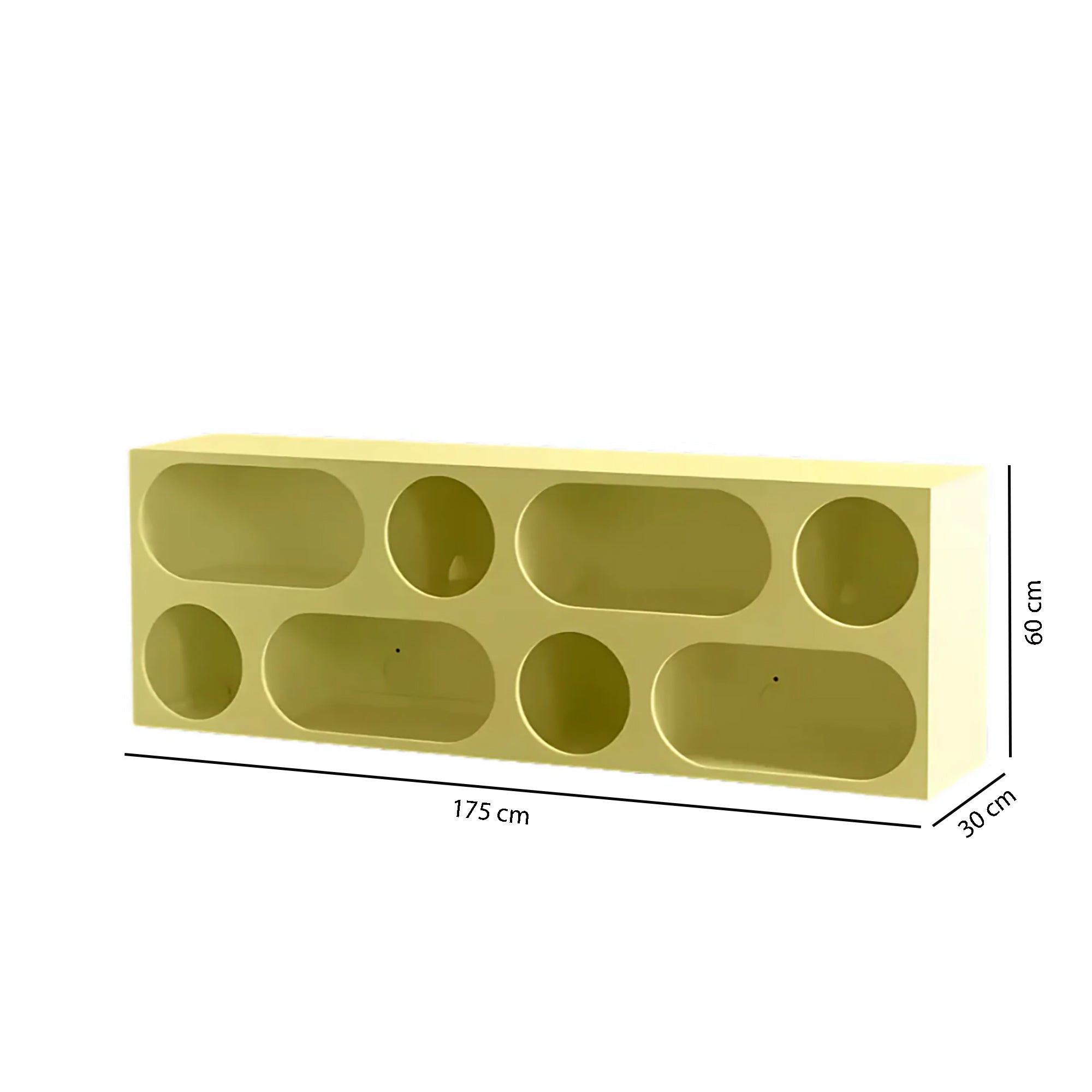Introducing the Cosmic Cabinet, a bold fusion of artistic design and practical functionality. Crafted from durable wood, this striking cabinet features a series of circular and oval cutouts that create an eye-catching display while offering versatile storage options. Available in captivating colors, the Cosmic Cabinet brings a modern and dynamic aesthetic to living spaces, offices, or bedrooms. Its unique design makes it a standout piece, perfect for elevating your interior decor with a touch of creativity.