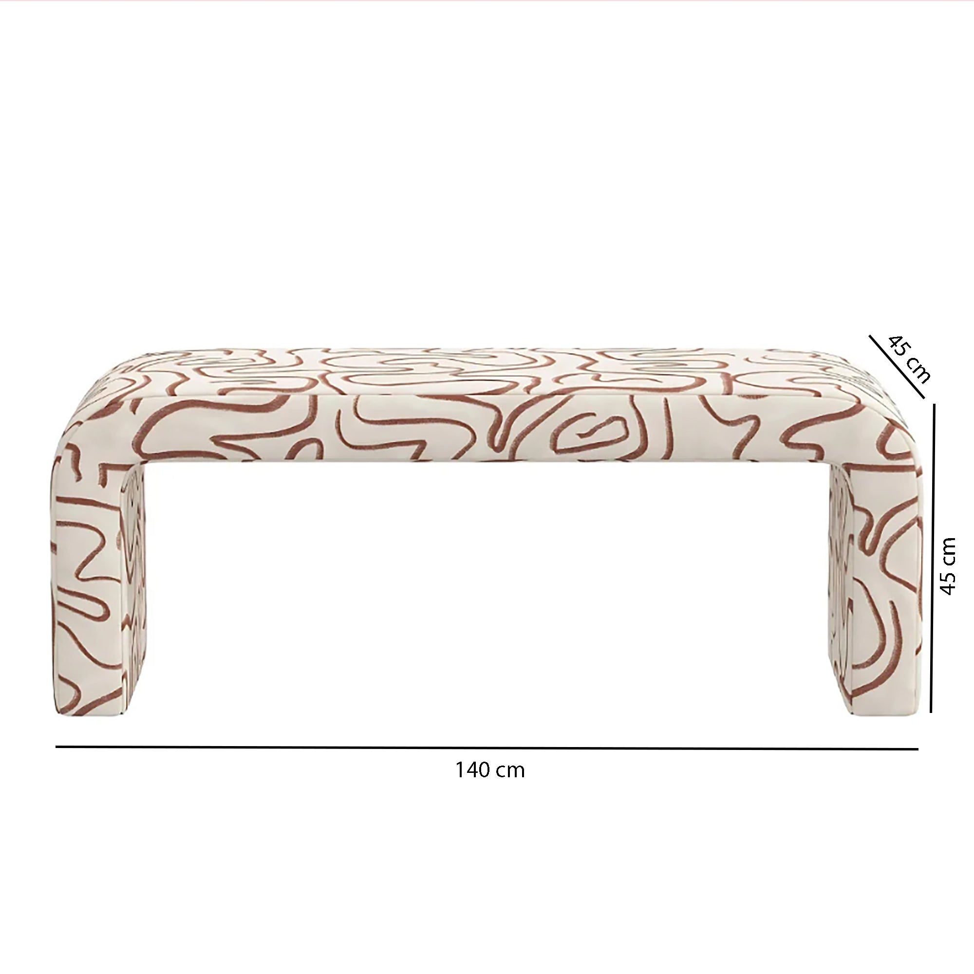 Introducing the Elgin Bench, a perfect blend of style and comfort that enhances any space with its relaxing vibe. Fully upholstered in a luxurious abstract fabric, this versatile bench is designed to complement your living room, bedroom, or entryway with ease. The Elgin Bench effortlessly combines stylish functionality with comfort, making it a chic addition to your home.