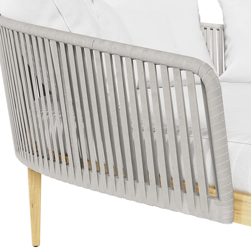 Introducing the Eli Outdoor Seating, a versatile and elegant addition to your outdoor oasis. Designed for comfort and functionality, this piece features a durable aluminum alloy frame with stylish rope accents. Its weather-resistant cushions provide the perfect spot for relaxing in the sun or enjoying a good book. Whether used as a cozy sofa or transformed into a spacious daybed, the Eli Outdoor Seating brings style and practicality to any patio, garden, or backyard.