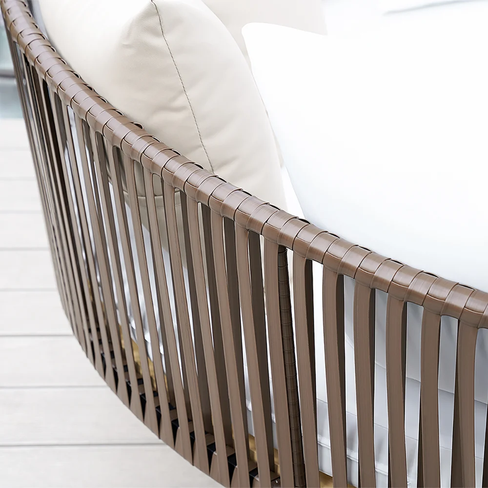 - Cushions crafted from weather-resistant fabric for outdoor durability.