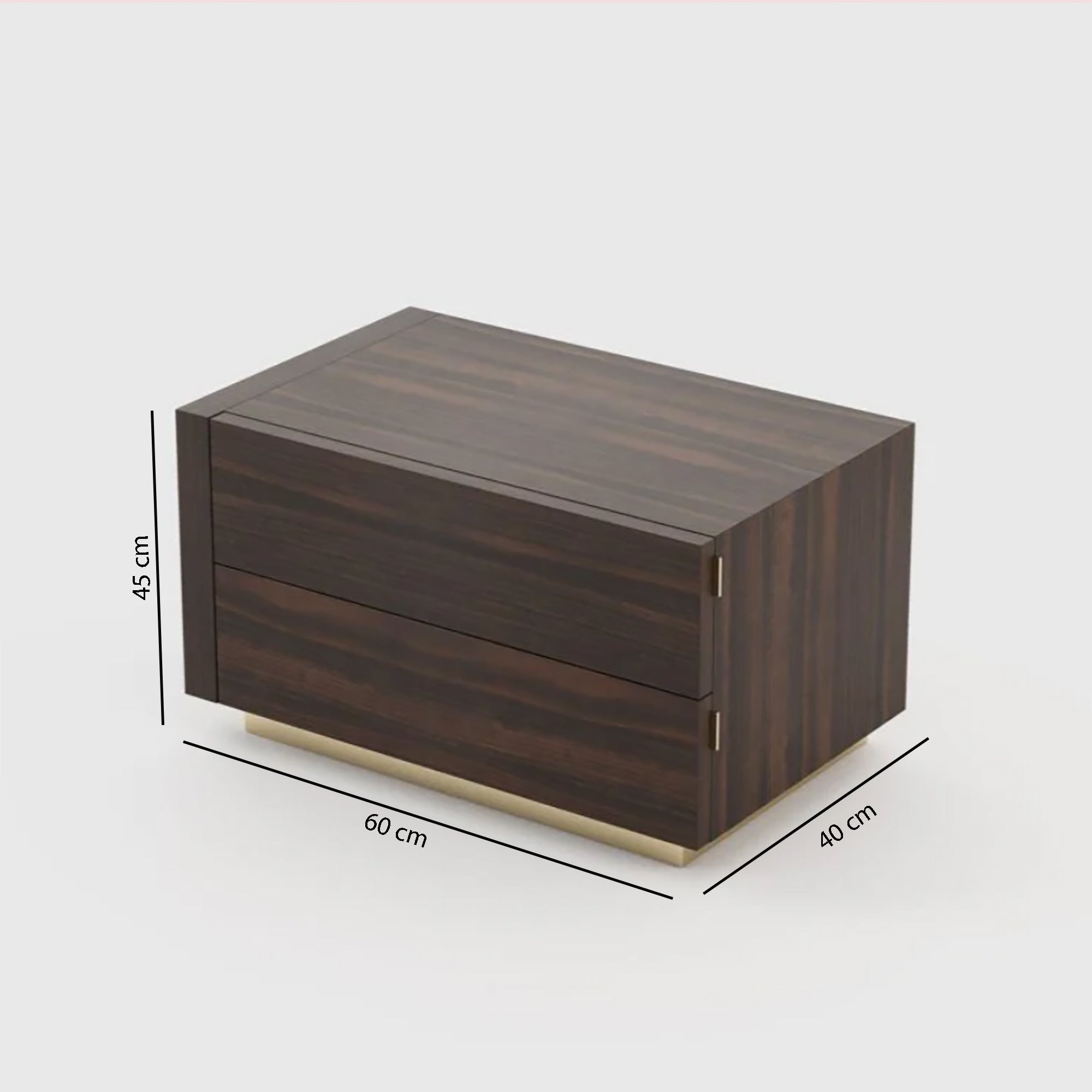 Introducing the Enchanted Bedside Table, a regal companion for your luxurious bed. Crafted with smooth wood and a custom-made metal base, this nightstand exudes elegance and sophistication. Featuring two soft-close drawers, it seamlessly blends style and functionality, making it a perfect addition to modern or classic bedroom settings.