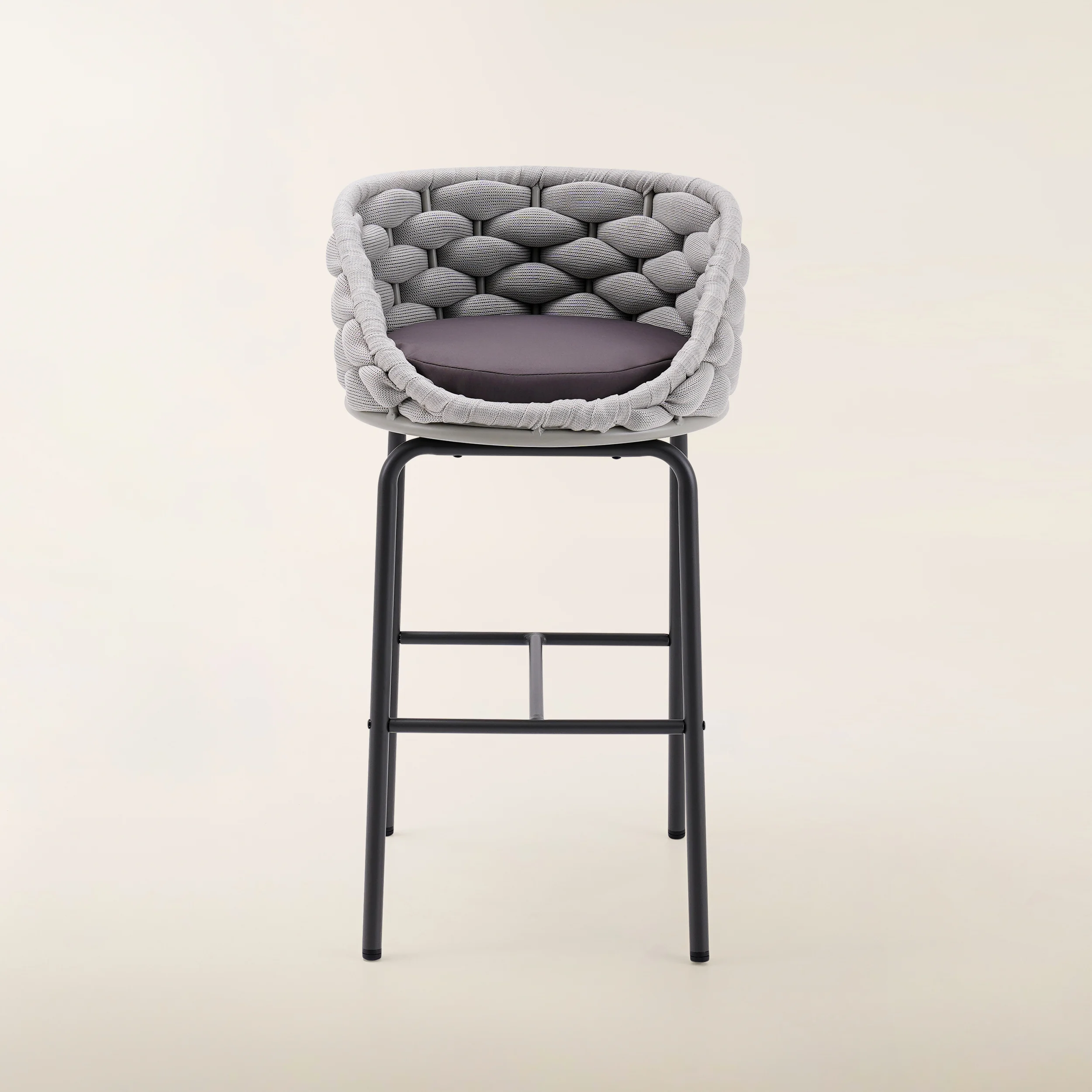 Enhance your space with the Helix Bar Stool, a seamless combination of style, durability, and ergonomic comfort. Featuring a robust metal frame and intricately hand-woven rope fabric, this stool offers reliable performance with a contemporary flair. The curved backrest is designed for optimal support, ensuring a comfortable seating experience. Its versatile design makes the Helix Bar Stool a perfect fit for modern kitchens, dining rooms, cafes, or any stylish setting.
