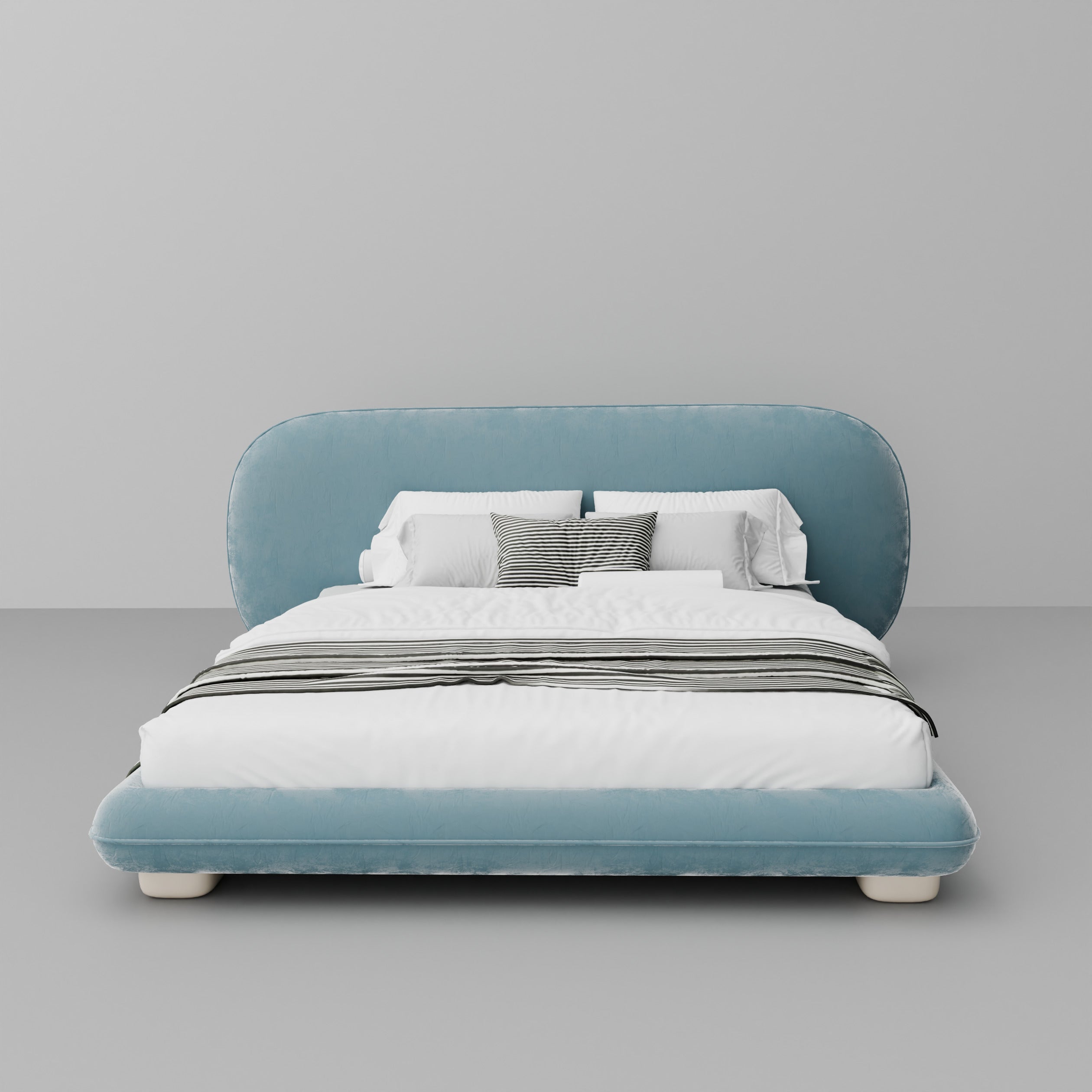 - Gracefully curved headboard seamlessly integrated with a sleek platform.