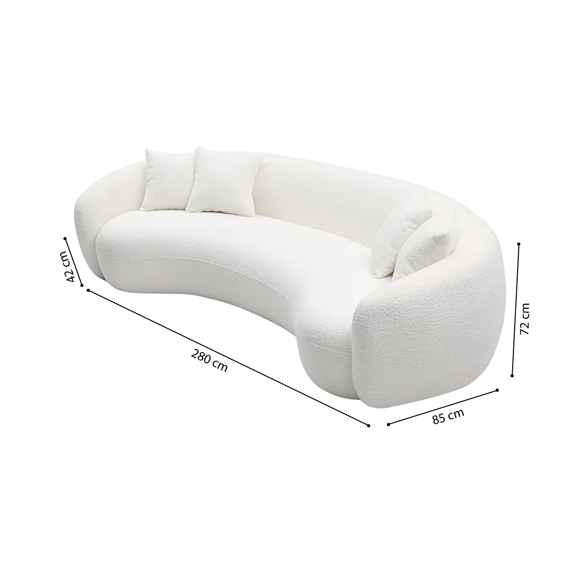 Experience contemporary elegance with the Kian Sofa, a modern masterpiece designed to elevate your living space. Its unique half-moon shape and sleek lines bring a touch of flair and sophistication to any room. Upholstered in premium boucle fabric, this sofa provides a luxurious seating experience with its irresistibly soft texture. With ample space for up to five people, it's ideal for family gatherings, casual lounging, or entertaining guests, making comfort and style seamlessly come together.