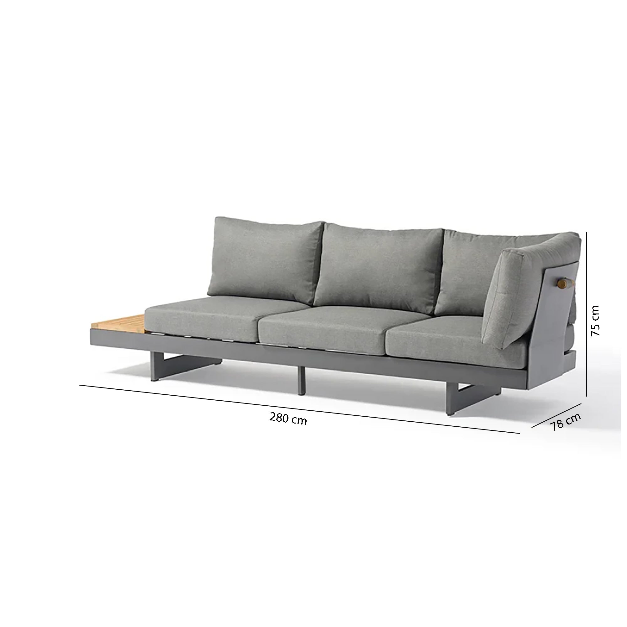 Transform your patio into a haven of relaxation with the Lior Outdoor Sofa Set, blending modern design with exceptional comfort. Featuring a durable aluminum and Meranti Outdoor Wood frame, this modular set accommodates up to six people and can be configured to suit any outdoor space. The high-density foam cushions are upholstered in waterproof, fade-resistant outdoor fabric, ensuring comfort and durability. Complete with a stylish Meranti Wood coffee table, this Lior Outdoor Sofa Set, offers an elegant and low-maintenance solution for outdoor lounging and entertaining.