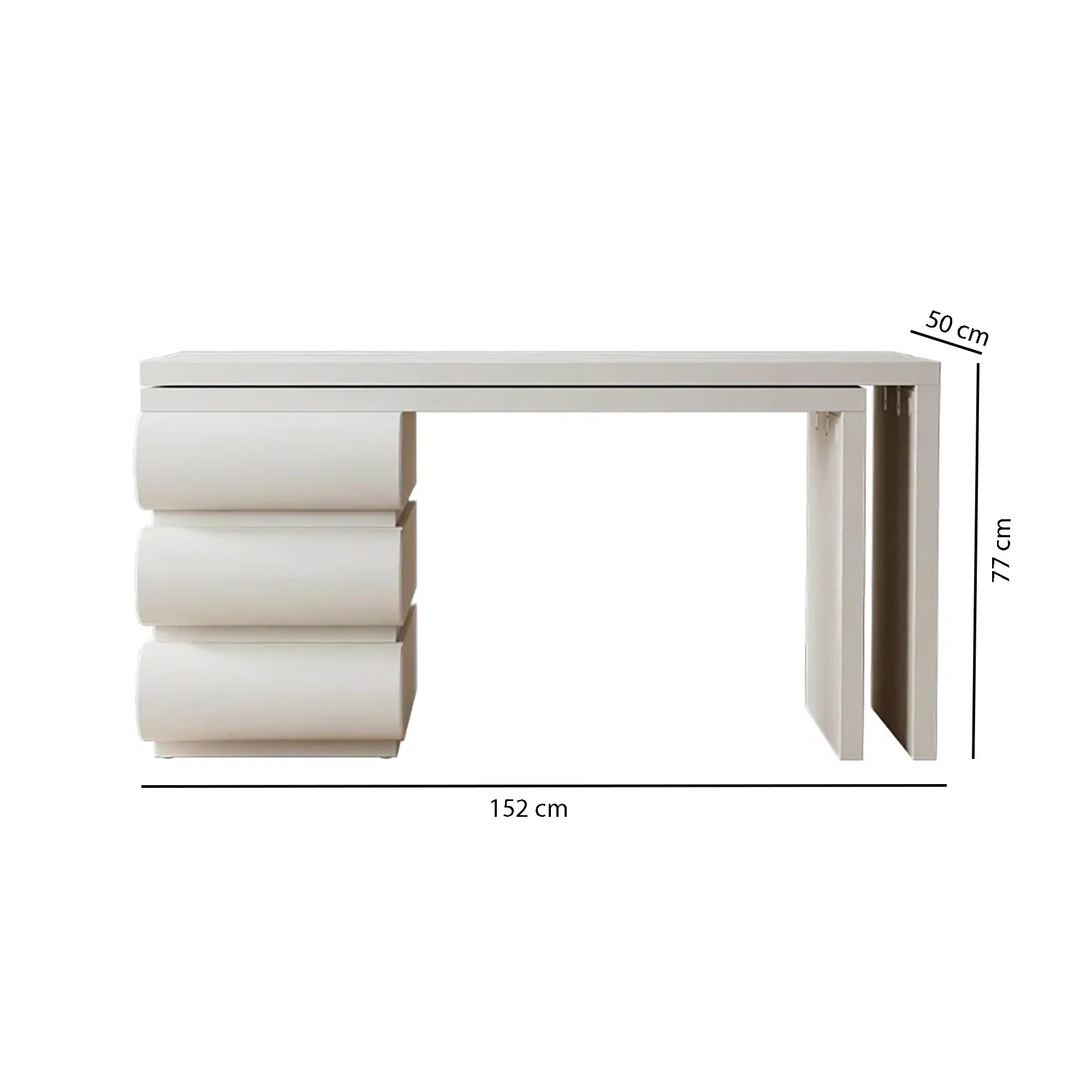 Introducing the Loria Desk, a refined blend of modern elegance and practical functionality. This versatile office desk features a spacious dual-surface design with 360° rotating tops, allowing you to adjust the layout freely. The desk also includes three integrated drawers for effortless organization. Designed with a minimalist aesthetic, premium materials, and small base wheels that glide smoothly without scratching floor, the Loria Desk is the ideal addition to any contemporary office or home.