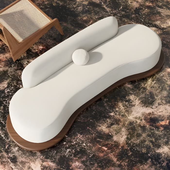 Introducing the Luxe Sofa – a stylish and comfortable addition to any living room. Its curved design offers ample seating for you and your guests, while the low back and sleek lines provide a contemporary look. The wooden base adds a touch of warmth, making it an ideal choice for relaxing, watching TV, entertaining guests, or even adding a touch of elegance to a home office or bedroom.
