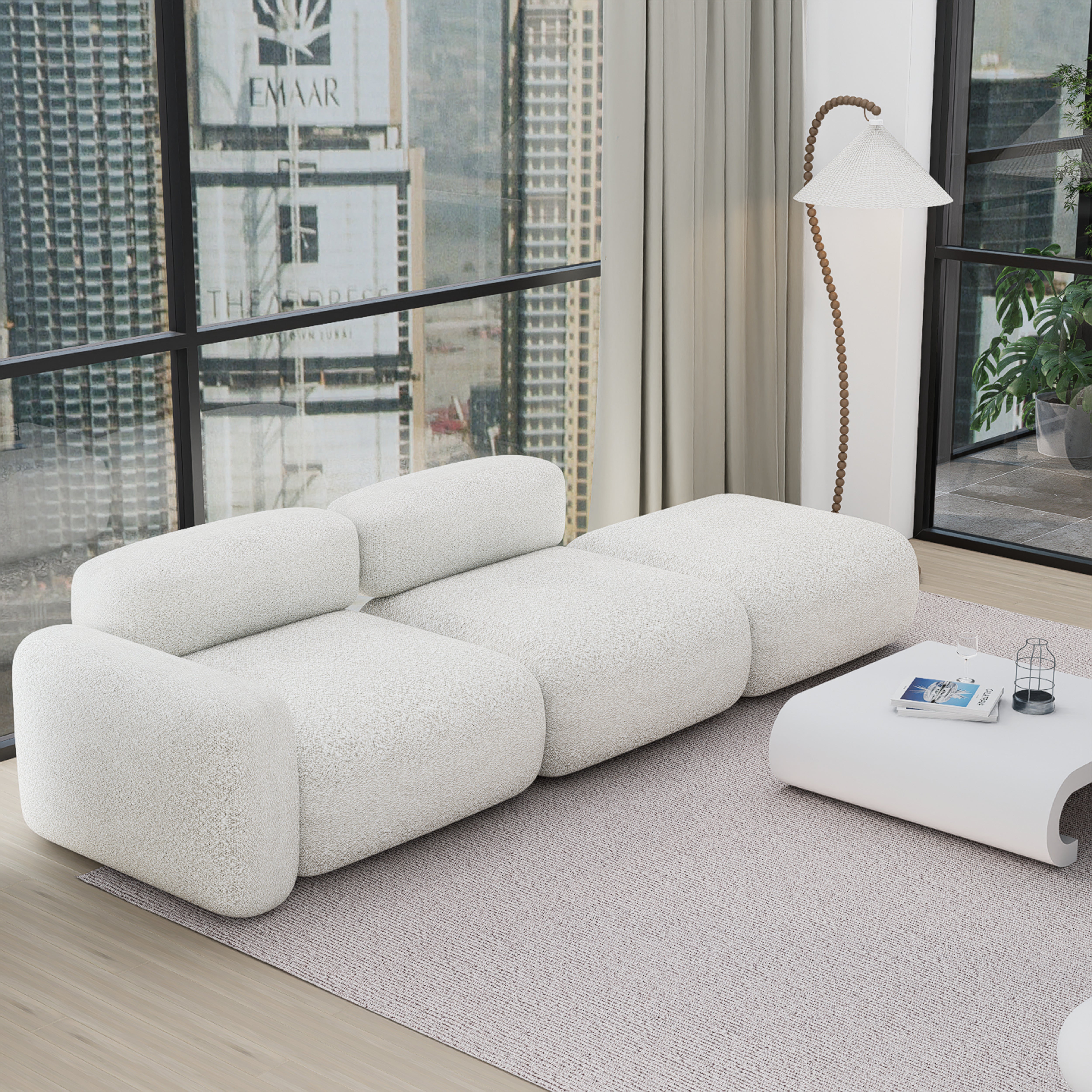 Transform your living space with the Marshmello Sofa, an epitome of luxury and modern elegance. Wrapped in premium boucle fabric, this sofa features a low-back design with plush, inviting cushions that seamlessly blend comfort with style. Its sophisticated silhouette and modular configuration make it a standout piece for any contemporary or boho-inspired home.