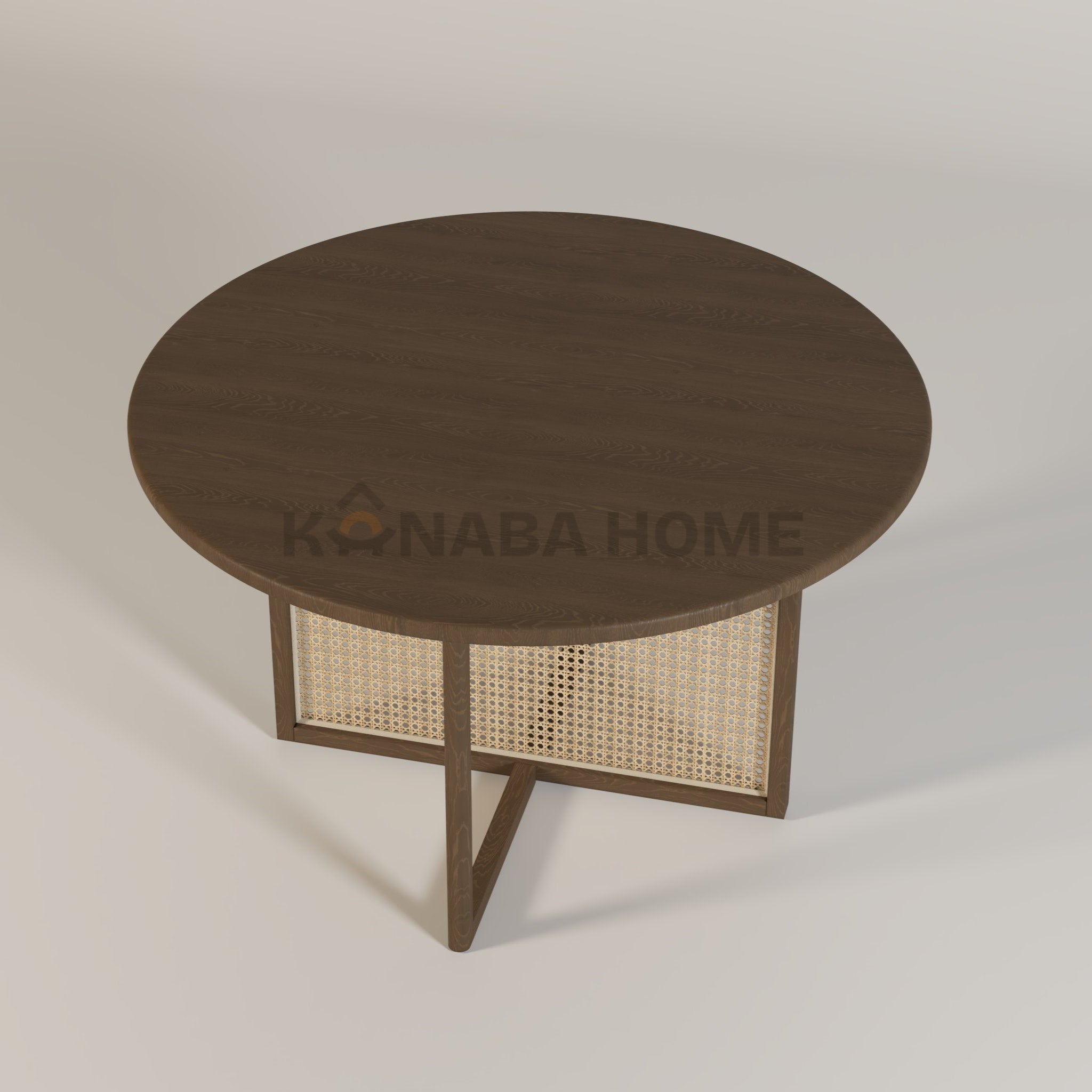 The Nara Rattan Dining Table presents a wooden round top which rests upon a rattan base that combines expert craftsmanship with attractive design elements. The design combines its lightweight appearance with its solid construction through its open design structure. The design follows dining areas which use contemporary design elements that unite organic elements with individual human-made elements.