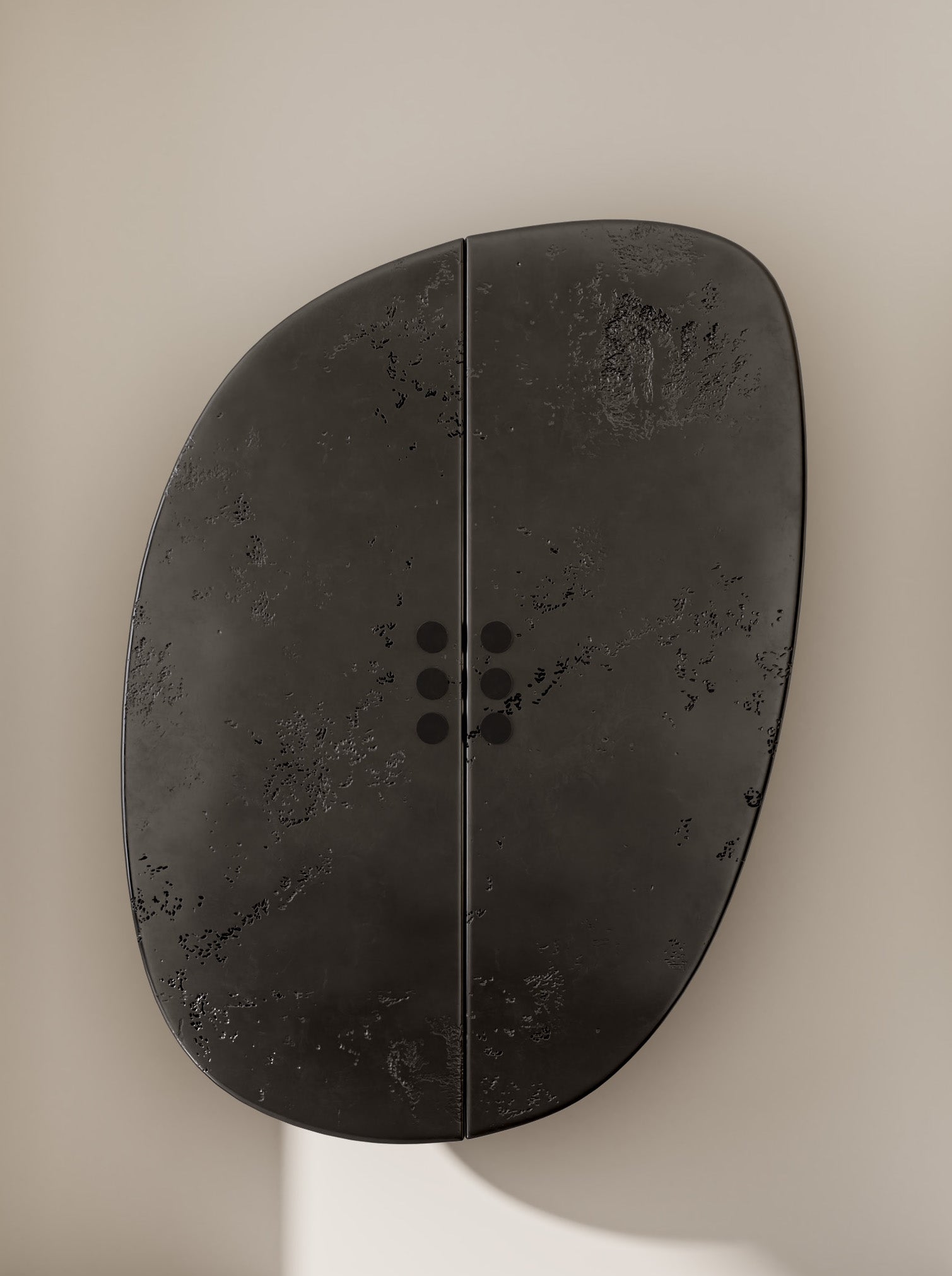 Unveil a world of mystery with the Nelda Cabinet, an enigmatic piece that captures the essence of depth and sophistication. Crafted with textured liquid iron doors and a black-stained oak interior, this cabinet's design invites curiosity and exploration. The addition of black-patinated cast bronze knobs enhances its mystique, making it a compelling centerpiece for any space. With its bold, dark aesthetics and intricate details, the Nelda Cabinet is more than just storage, it’s a journey into a world of hidden wonders.
