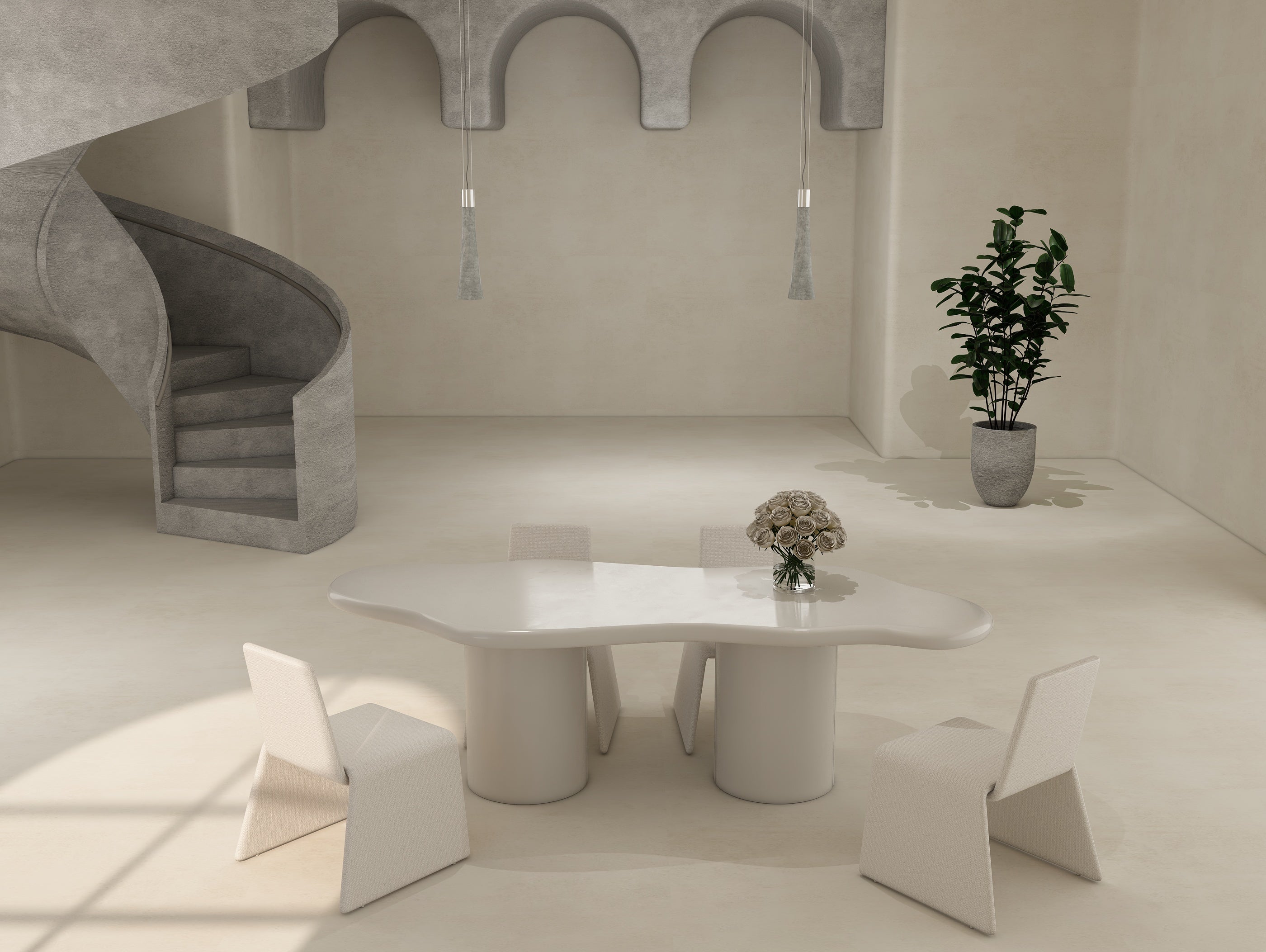 Elevate your dining experience with the refined elegance of the Ola Dining Table. Featuring a sturdy solid wood base, meticulously coated with microcement, this table combines durability with sophisticated style. The matte finish, treated with a water and dirt-repellent protective layer, ensures longevity. The Ola Dining Table's robust construction and distinctive microcement finish make it a standout piece, perfect for adding a touch of luxury to your dining space.
