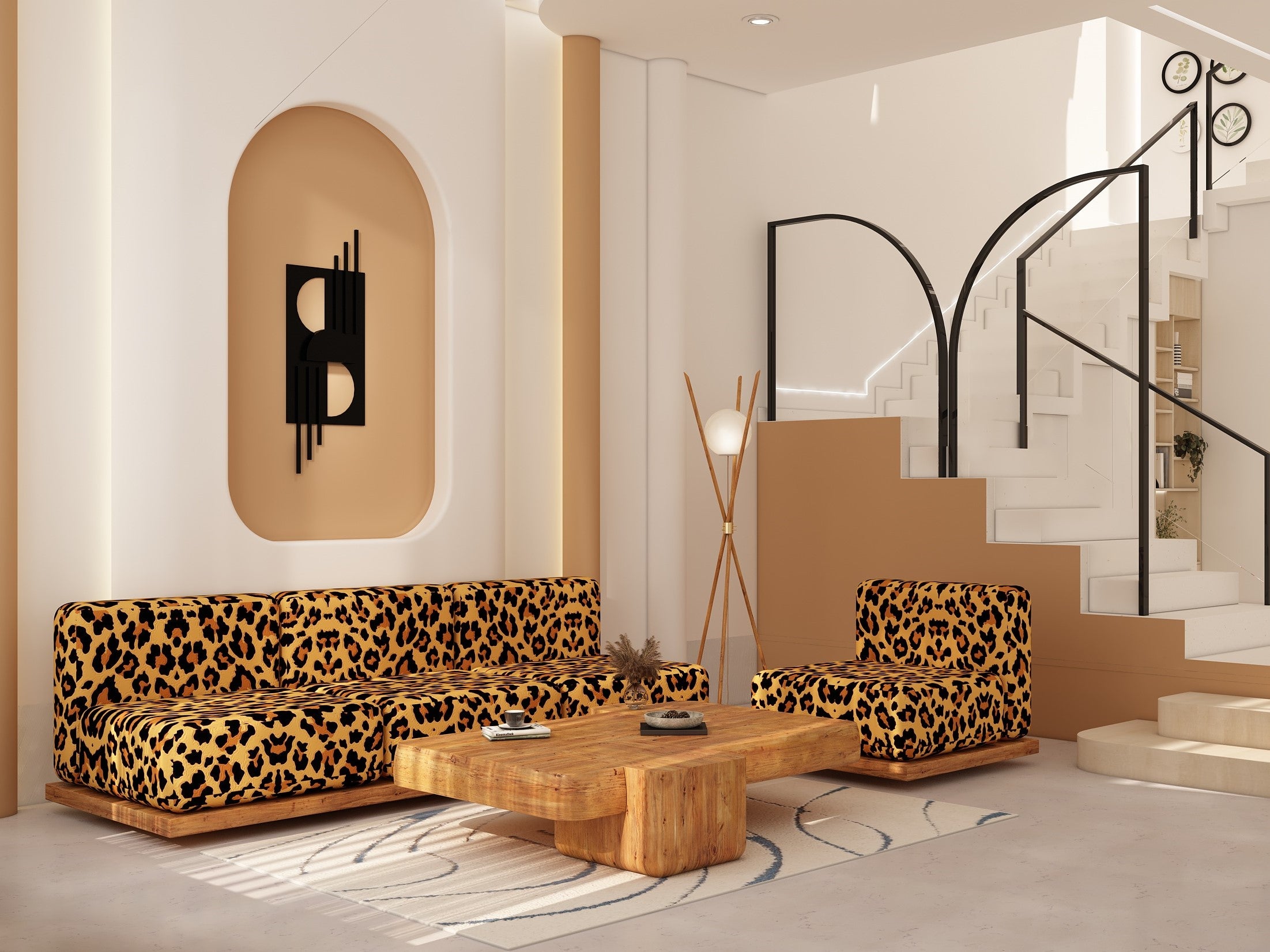 - Leopard-print upholstery adds a bold, stylish touch