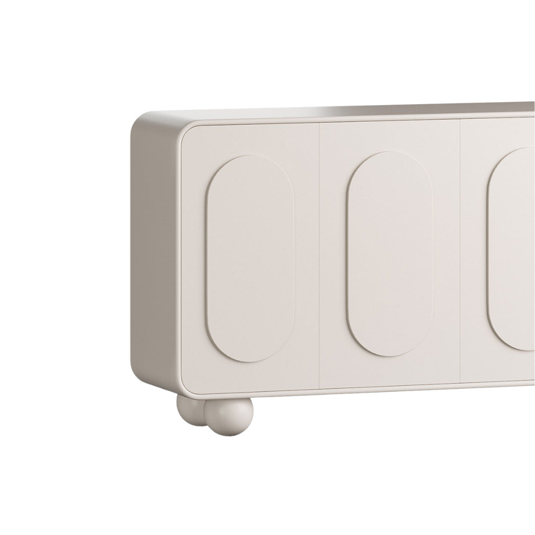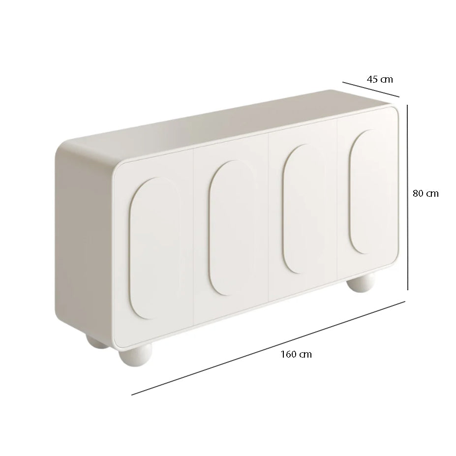 Striking a balance between contemporary simplicity and practical storage, the Orila Sideboard brings refined functionality to any room. Finished in clean matte white and crafted from a combination of solid and manufactured wood, its streamlined profile and four-panel design offer understated elegance. Ideal for organizing dining essentials, tech gear, or home accents, this sideboard is as versatile as it is timeless.