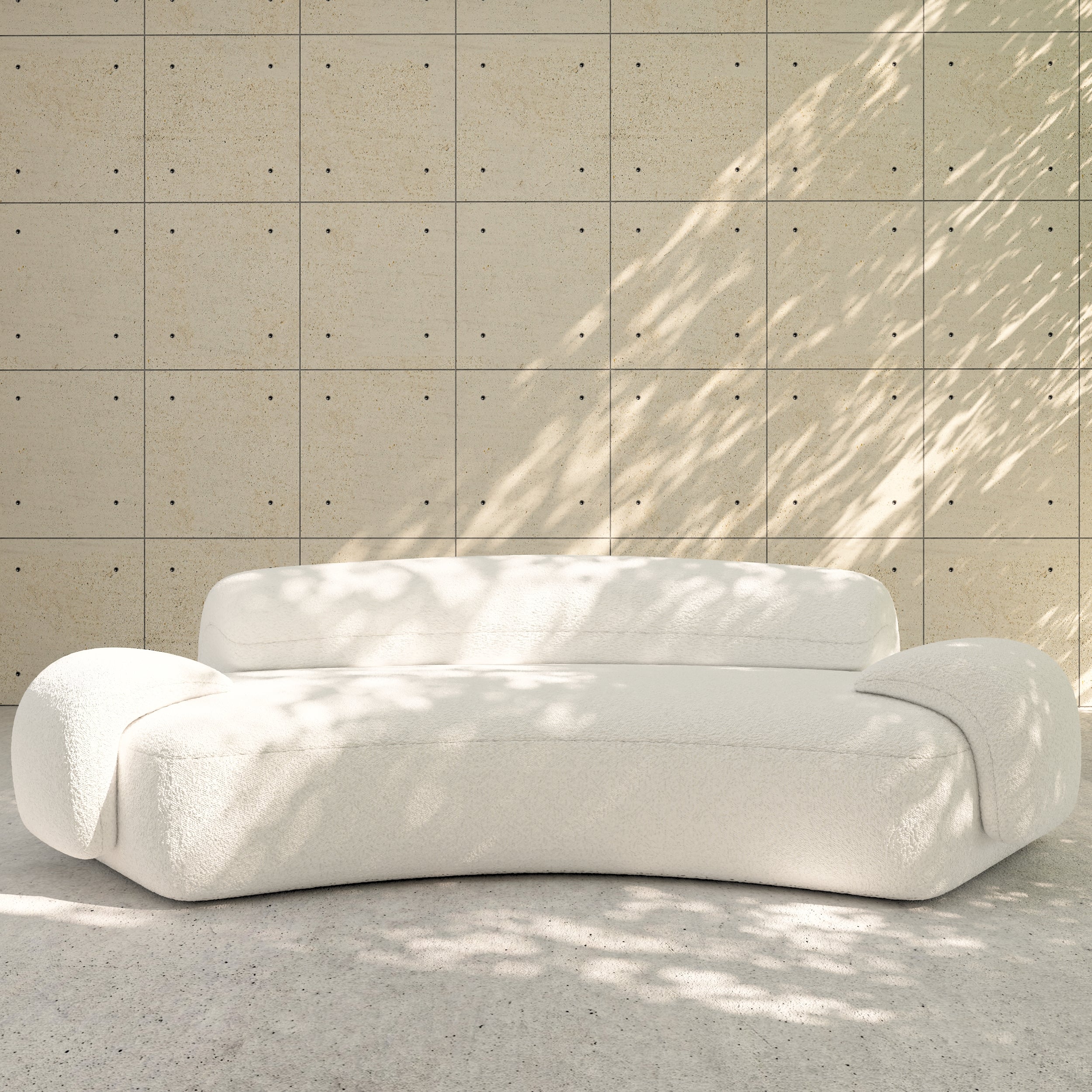 Elevate your living space with the Oru Sofa, where modern design meets inviting comfort. Featuring soft, sculptural curves and plush boucle/ velvet upholstery, this sofa is a statement piece that blends seamlessly into contemporary interiors. Its spacious design offers both aesthetic appeal and a cozy retreat for ultimate relaxation.