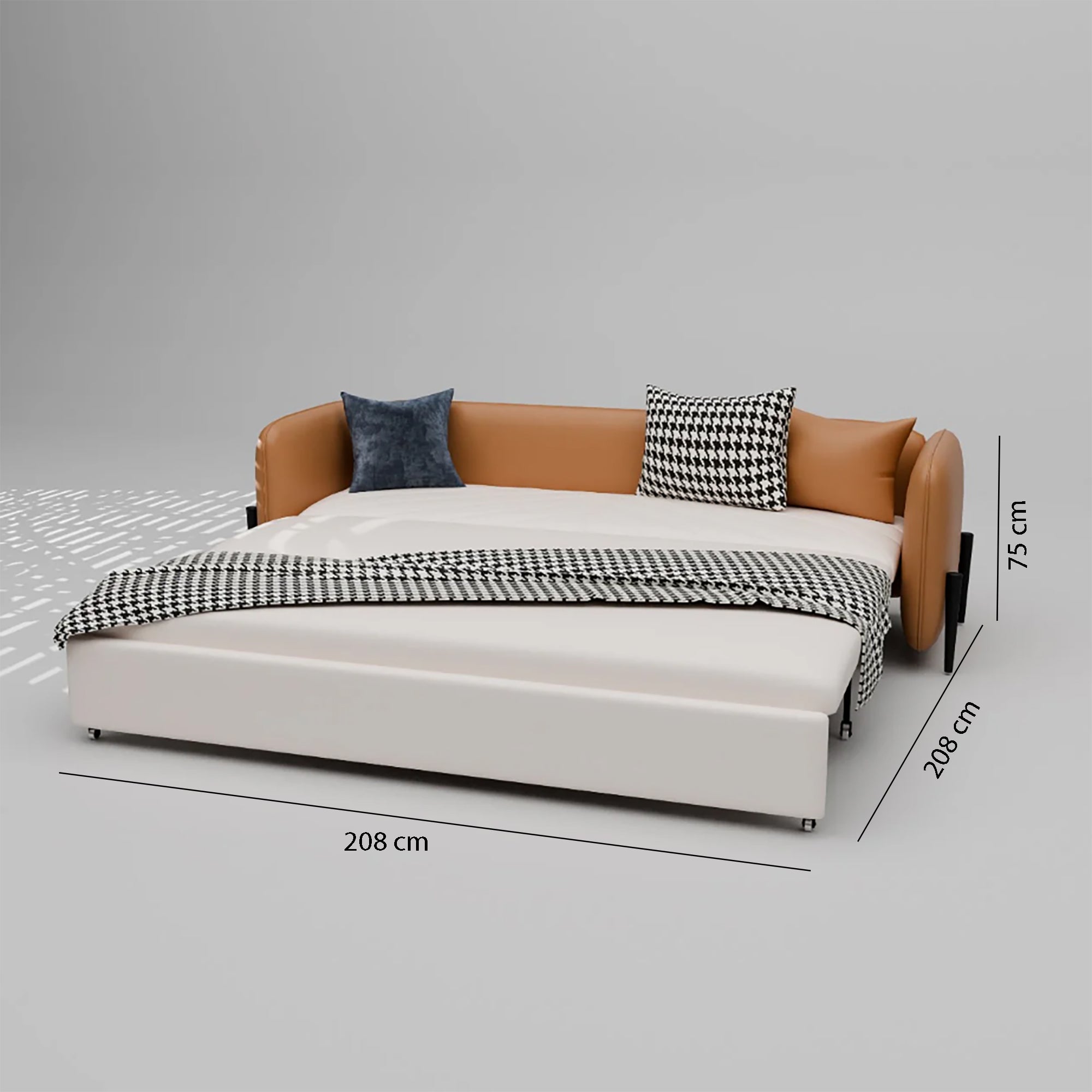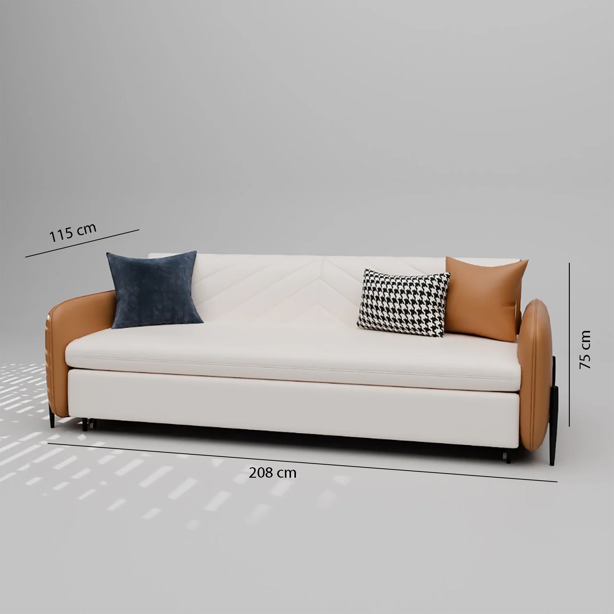 Add the Selena Sofa Bed to your living space. The Selena Sofa Bed has leather covering, thick foam padding and a strong metal frame, with legs. This Sofa Bed feels very comfortable. In office and need some break? this sofa cum bed helps you relax or take small naps. This works great in the flats or studios where the space is hardly enough for residents. The Selena Sofa Bed changes from a couch to a bed in a few steps. Complete with pillows and arms, it's a luxurious and practical addition to any bedroom, office, or remote location.