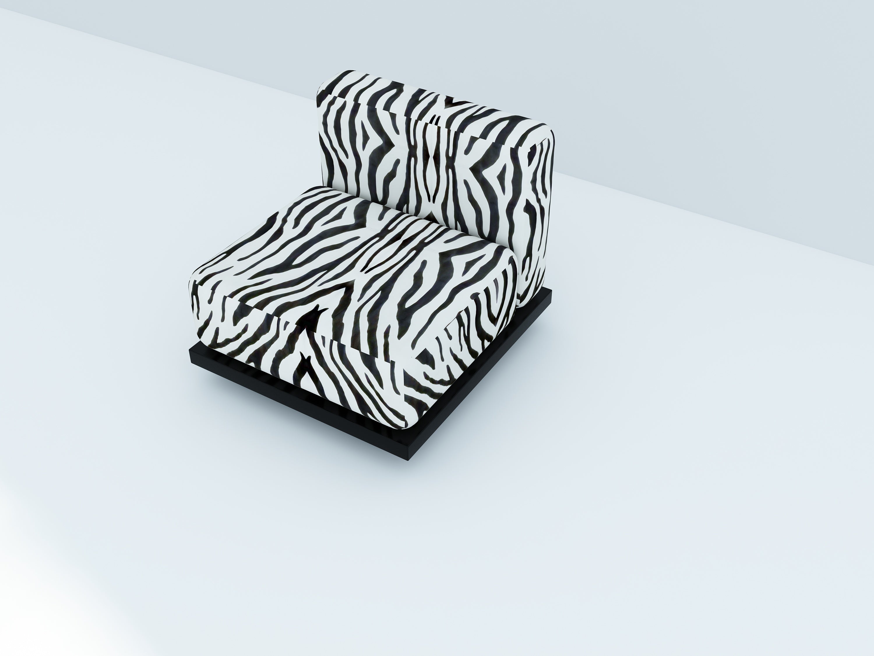 Introducing the Sereno Accent Chair, a modern masterpiece that redefines elegance with its sleek, armless silhouette and unique ground-connected backrest. This modular chair combines comfort and sophistication, featuring a luxurious white and black velvet, zebra designed, complemented by a sturdy black wood base. Ideal for contemporary interiors, the Sereno Accent Chair offers a touch of refinement and flexibility, blending seamlessly with other modular pieces for a customized look.