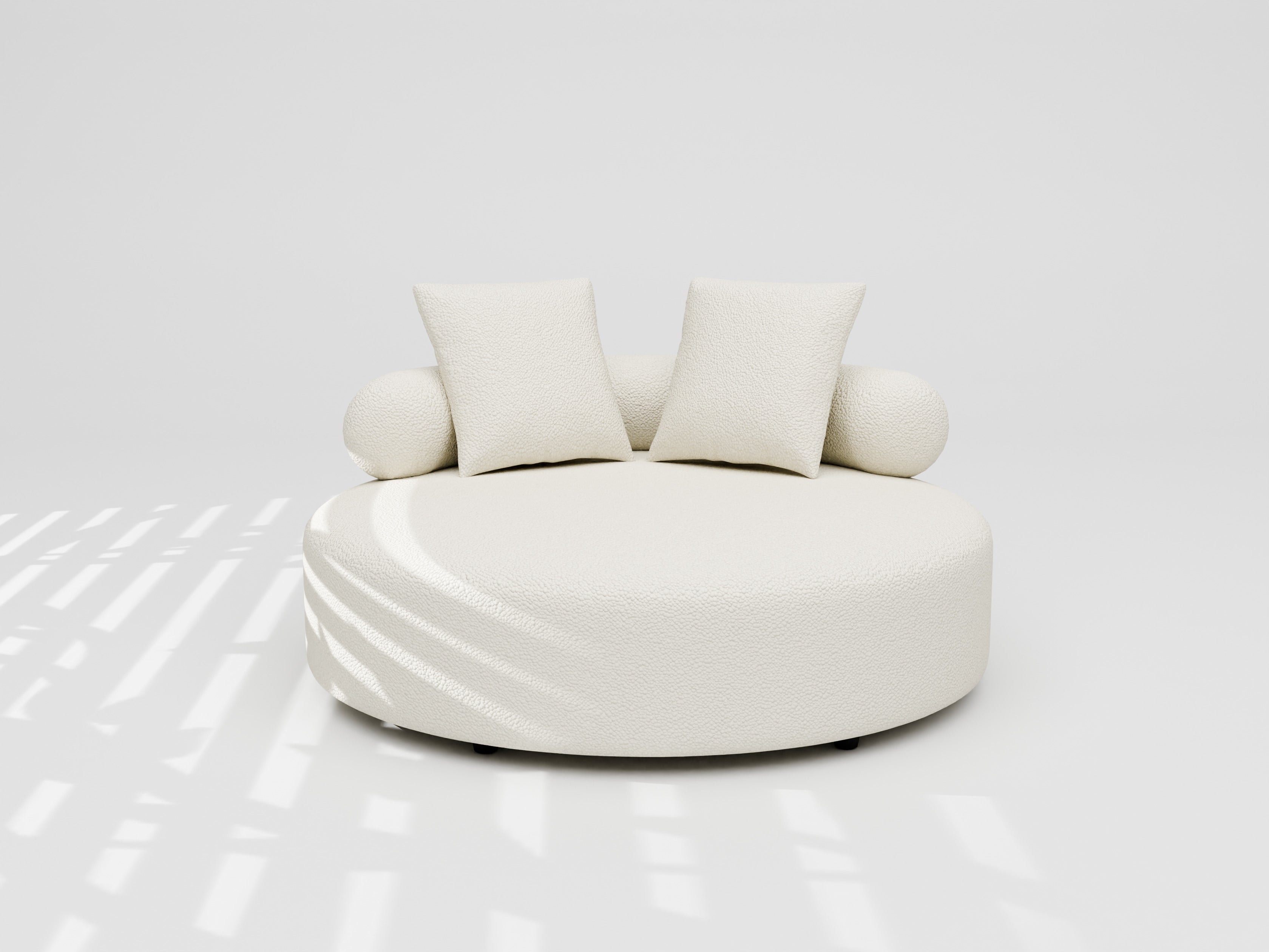 The Tart V.II Daybed is a refined expression of modern elegance and indulgent comfort. Designed with a sculptural round silhouette, this statement piece is upholstered in premium boucle/ velvet, offering a soft, luxurious texture that elevates any interior. Its contemporary form paired with timeless fabric choices makes the Tart V.II Daybed a versatile centerpiece for living rooms, lounges, or boutique-style spaces. Generously padded and thoughtfully crafted, it invites effortless relaxation while adding a bold, sophisticated touch to your home.